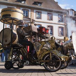 Ein mobiles, musikalisches Feuerwerk im wahrsten Sinne des Wortes ist dieses „One-Man-Orchester“: Wenn der charmante Le Pianoteur auf drei Rädern überraschend um die Ecke kommt, raucht, blubbert und schneit es, während der am Lenkrad sitzende Musiker mit spontan improvisierten Medleys aus recycelten Instrumenten sein Publikum mit Leichtigkeit mitnimmt!