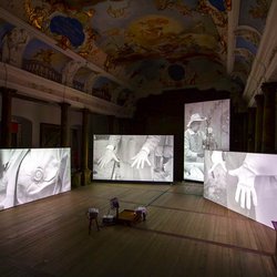 Am 2. April 2025 – 500 Jahre nach dem Bauernsturm auf das Kloster – verwandelte Lukas Rehm den Theatersaal der Abtei Ottobeuren in eine vielschichtige Klang-Bild-Installation. Revolutionäre Sprache, digitale Bildwelten und performative Elemente verschmolzen zu einem dichten Kommentar über Macht, Öffentlichkeit und kollektive Erinnerung.