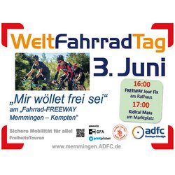 "Mir wöllet frei sei" am "Fahrrad-FREEWAY Memmingen - Kempten" - den Auftakt macht der ADFC zusammen mit Oberbürgermeister Jan Rothenbacher um 16:00 Uhr vor dem Memminger Rathaus.