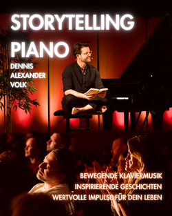 Der Pianist, Yoga-Lehrer und Autor Dennis Alexander Volk spielt mit Inspiration und Leidenschaft Klaviermusik zum Entspannen und bei sich selbst Ankommen. Er berührt die Herzen der Zuhörer mit seiner heilsamen Musik und regt mit Impulsen aus seinem Buch „Storytelling Piano“ dazu an, das Leben neu zu entdecken. Der Künstler liest während des Konzertes einfühlsam aus seinem Buch, welches dazu anregt, das Leben als Solches zu zelebrieren. Zudem präsentiert der Künstler an diesem Abend sein neues Album mit wunderschönen Kompositionen.