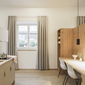 Hochwertige Apartments im historischen Gebäude mit vollausgestatteter Küche, Bad mit Dusche, Ultra-HD Smart TV und kostenlosem WLAN. Regelm. Reinigung mit Handtuchund Bettwäschewechsel und kostenfreie Nutzung des Waschsalons inklusive. Flexible An- und Abreise durch kontaktlosen 24h-Zugang möglich.