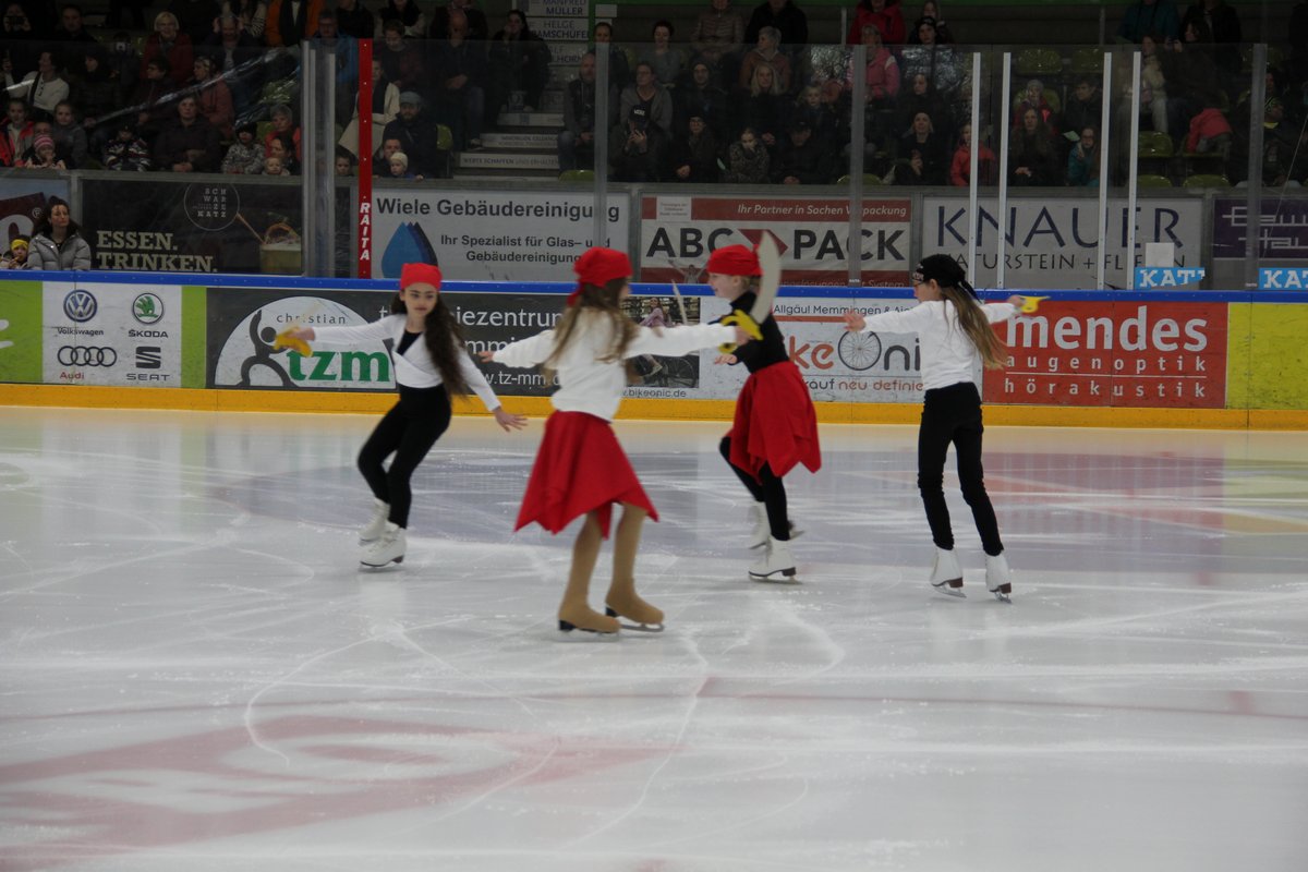 Rund 80 Kinder und Jugendliche zeigen ihr Können in Gruppennummern und Küren in der ALPHA COOLING-Arena, die Eissporthalle in Memmingen.